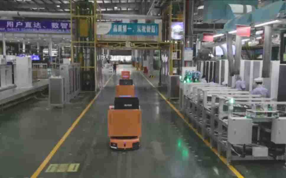 为车载冰箱物流配送打造的智能解决方案,,,,包含产中物流通过潜伏举升AMR搬运至线边,,产后成品物流智能仓储,,,流程包含产中物流智能齐套入库,,,,线边安灯叫料AMR智能配送至线边,,,成品入库、、、出库,,通过无人堆高车机器人,,智能仓储管理替代人工作业管理,,,实现更高存储、、、更高效率、、更具柔性化的解决方案。。。